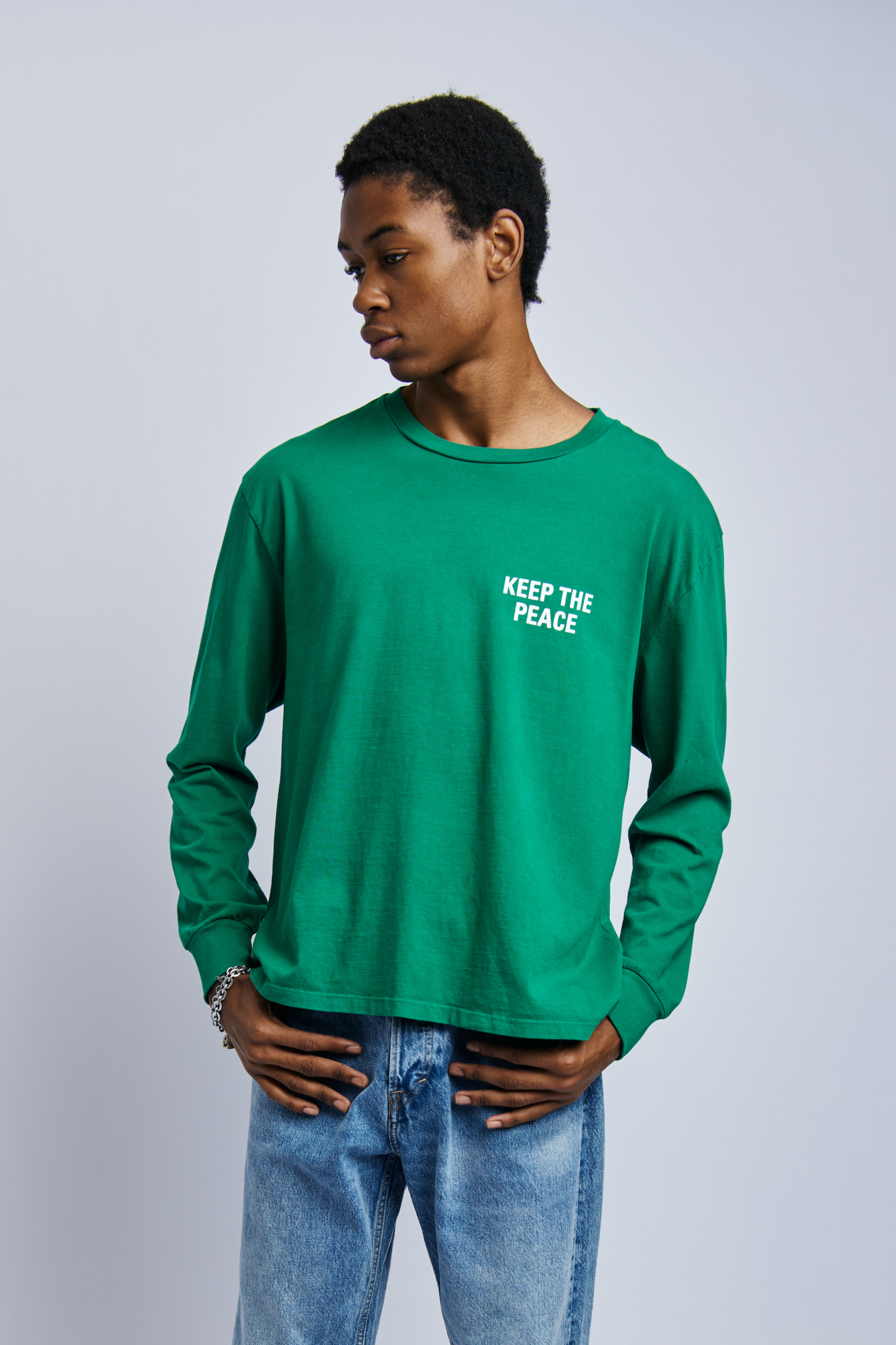 Keep The Peace Midweight Relaxed Long Sleeve, Rolex Green