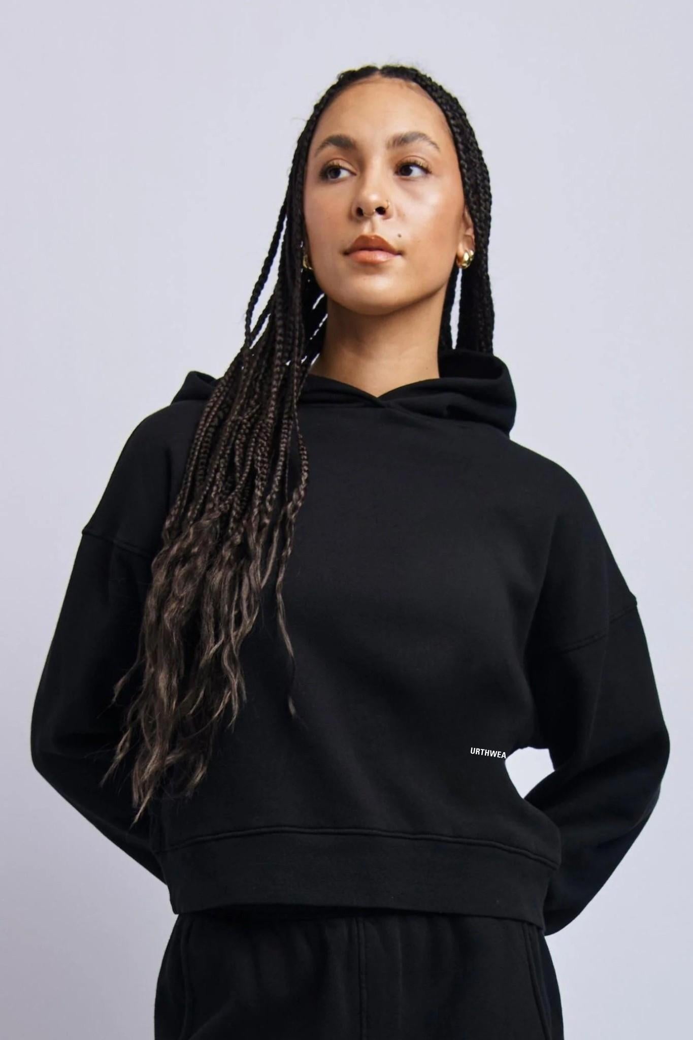The Cropped Hoodie - Super Black